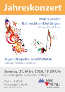 Der Musikverein Ballrechten-Dottingen präsentiert mit seinem Dirigenten Pascal Arets beim Jahreskonzert 2026 ein sehr abwechslungsreiches und unterhaltsames Konzertprogramm.
